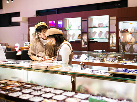 併設のショップには、ジュエリーやアクセサリーはもちろん、観賞用の天然石まで幅広くラインナップ。石の専門店ならではのお求めやすい価格も魅力で、旅の記念や特別な贈り物にぴったりの一点に出会えるかも♪